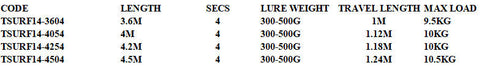 The 3.60 meter, 4.0 meter and 4.50 meter long rods are also a high quality product for natural bait fishing and fishing over very long distances!